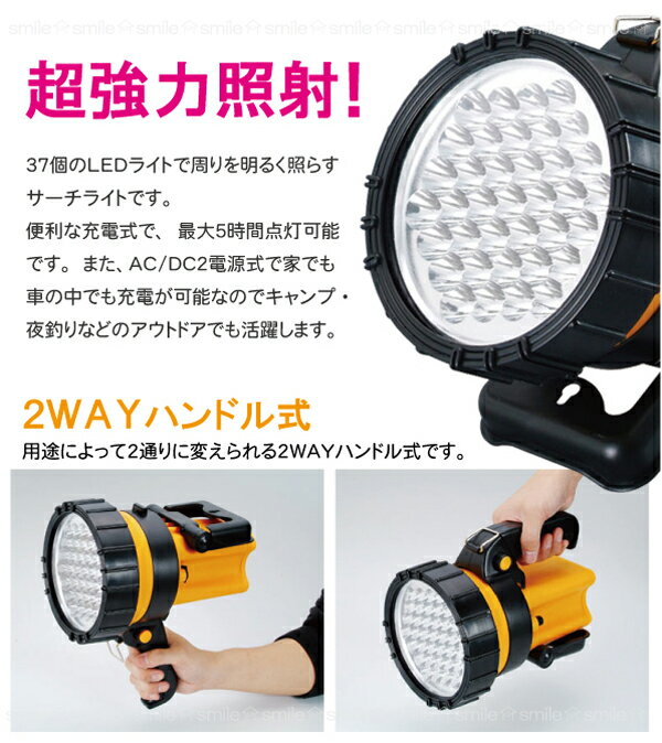 37個ものLEDライトを使用した大きめのサーチライトです。