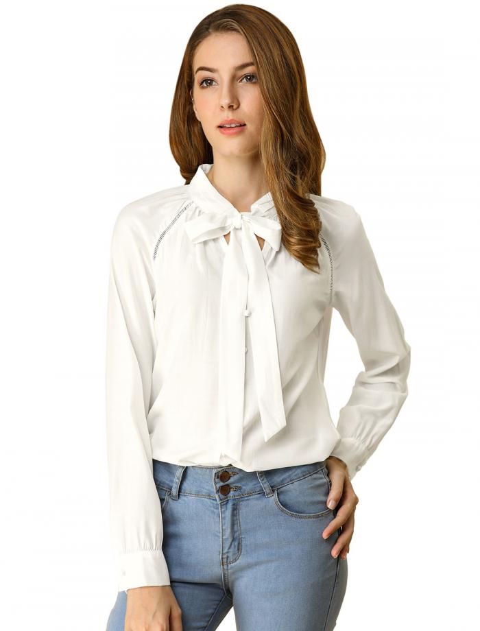 ソウテン ボウタイブラウス シャツ リボン 長袖 オフィス カジュアル レディース オフホワイト XS