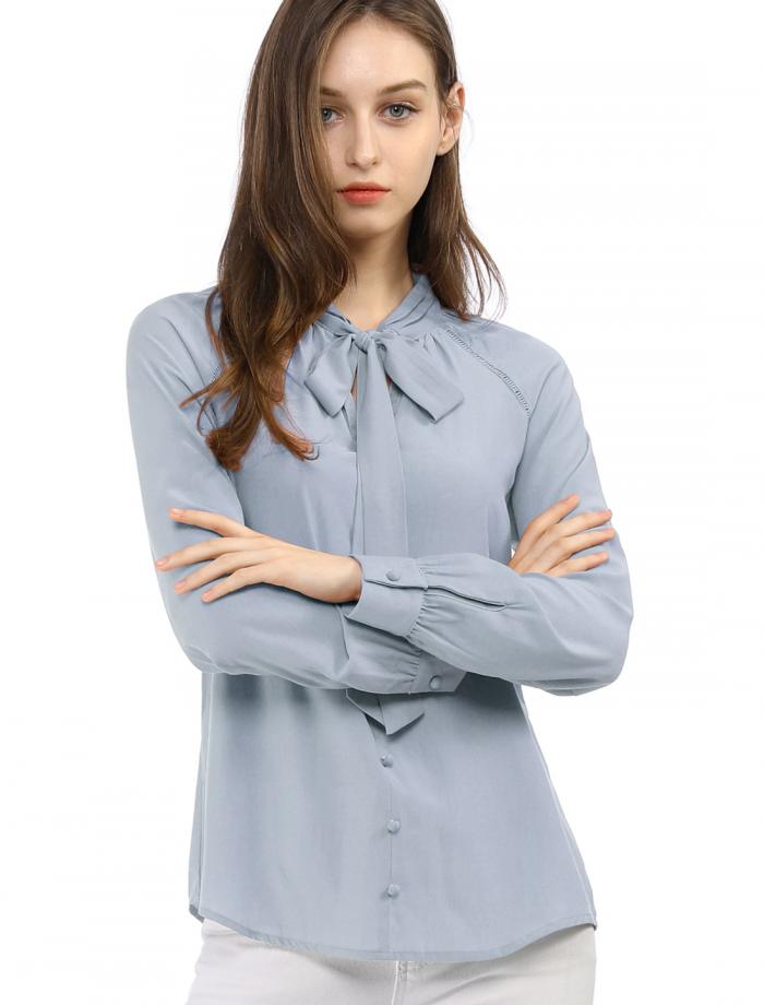 ソウテン ボウタイブラウス シャツ リボン 長袖 オフィス カジュアル レディース ライトブルー XL